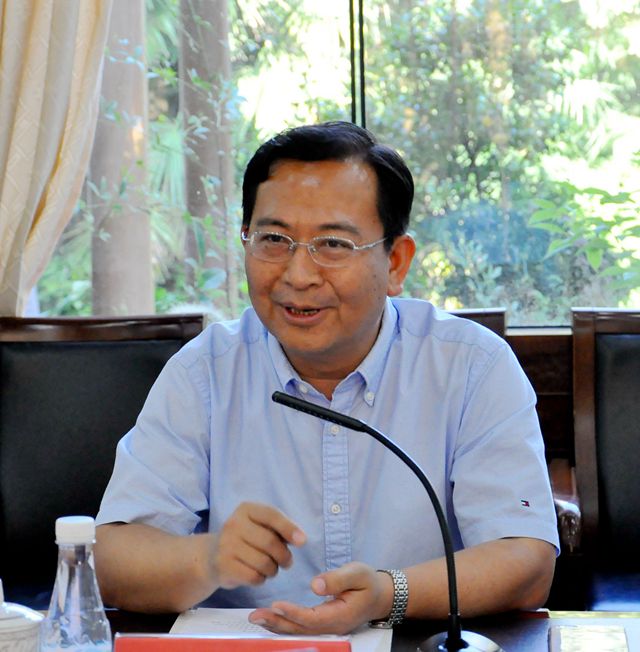 黔南师院党委书记石培新教授发言。他介绍了黔南师院的基本情况,并指出两校同为“民”字号高校,有着深厚渊源和合作基础。黔南师院依托自治州丰富的民族文化资源,促进学科发展,重视内涵建设,并高度重视与地方政府的合作共建。他感谢贵州民大长期以来对黔南师院的支持,期待双方的合作尽早产生丰硕成果。