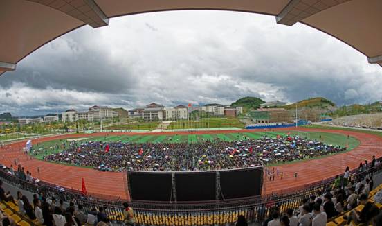 风雨兼程起航时,寸草春晖两依依。6月24日,贵州民族大学大学城校区经过夏雨的沥沥洗礼,为毕业同学绽放祝贺的彩虹,四千余名师生精神焕发地在田径场参加2018届毕业典礼暨学位授予仪式。校领导张学立、陶文亮、唐建荣、肖远平、胡忠良、王林、韦维、樊铁钢及校长助理张彩江出席;各职能部门负责人,各学院党委书记、院长、分管学生工作副书记(副院长),辅导员、毕业班班主任、教师代表、全体毕业生、在校生代表和家长代表四千余人参加。副校长王林主持仪式。