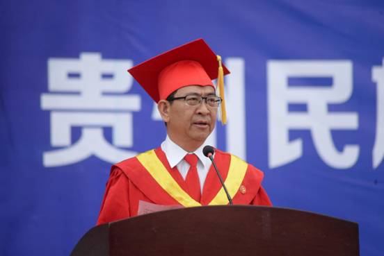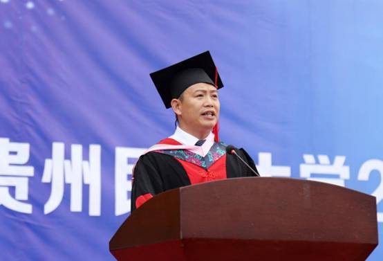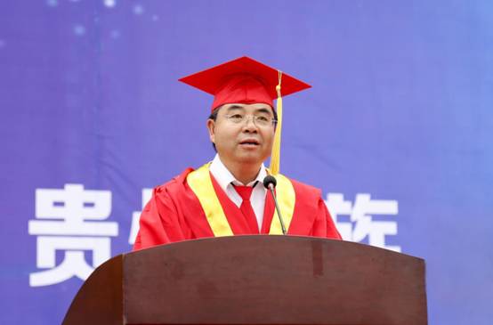 校长陶文亮教授讲话。他说,四年前,同学们因为梦想,怀着对大学生活的美好憧憬和对知识的渴求来到贵州民族大学,在这里求学问道,度过了人生中最灿烂的青春岁月和美好时光。毕业是大学学习的终点,更是人生新篇章的起点。陶文亮勉励全体毕业生:一要立鸿鹄之志,做一个坚韧的奋斗者;二要勤于学习,做一个追求真理的学习者;三要勇于前行,做一个知行合一的实干家。希望全体毕业生带着母校美好的祝福踏上人生新的旅途;衷心希望同学们继续保持“奋发蹈厉庄敬自强”的民大精神,保持与母校的紧密联系,开创属于自己的全新未来,在为祖国为人民的奉献中成就最好的自己。