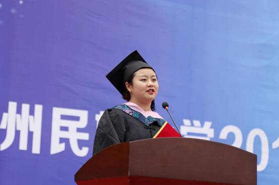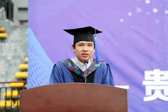 来自老挝的李可代表硕士毕业生和留学生发言。他说,感谢中国政府提供宝贵的深造机会,感谢贵州民族大学给予的教育和关爱。三年时间不仅学到专业知识,还收获中国老师和同学的友情和帮助;返回祖国后,将做两国人民的友好使者;为中国和祖国的世代友好尽一份力。