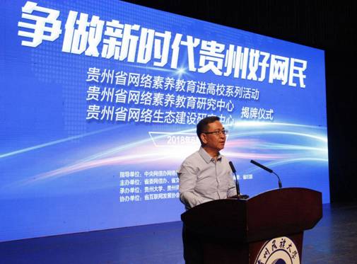 6月27日,贵州省网络素养教育进高校系列活动在贵州民族大学大学城校区学生活动中心启动,贵州省网络素养教育研究中心、贵州省网络生态建设研究中心同时揭牌。中央网信办网络社会工作局盖群、中国社会科学院研究员孟威、省委网信办副主任刘冲、省文明办副主任李毅、省委教育工委副书记赵廷昌、省总工会副主席杨杰、团省委副书记丁毅、省妇联党组成员陈月蓉、多彩贵州网总编辑张云泓出席。