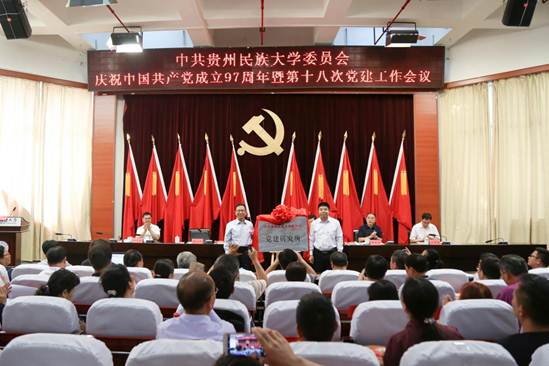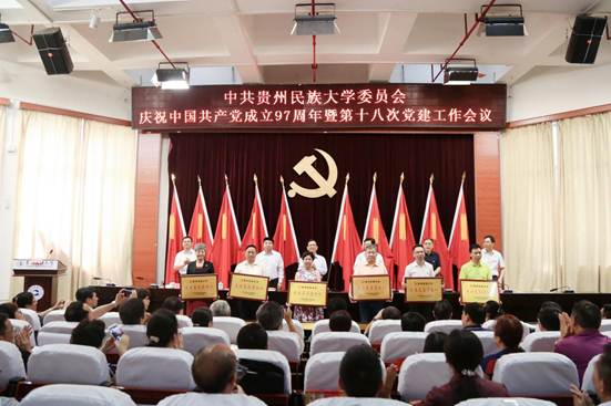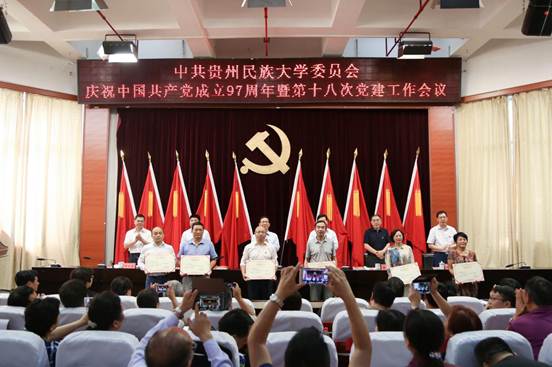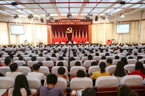 6月28日,中共贵州民族大学委员会庆祝中国共产党成立九十七周年暨第十八次党建工作会议在花溪校区十五栋会议中心召开。校党委书记张学立,校党委副书记、校长陶文亮,校党委副书记唐建荣,校党委委员、副校长胡忠良、樊铁钢,原我校党委书记高万能出席,校内各民主党派负责人及民主党派、无党派人士代表列席,全校处级干部、离退休老同志代表、各党支部书记、受表彰的优秀党务工作者、优秀共产党员、新党员代表共计400余人参加。陶文亮主持会议。