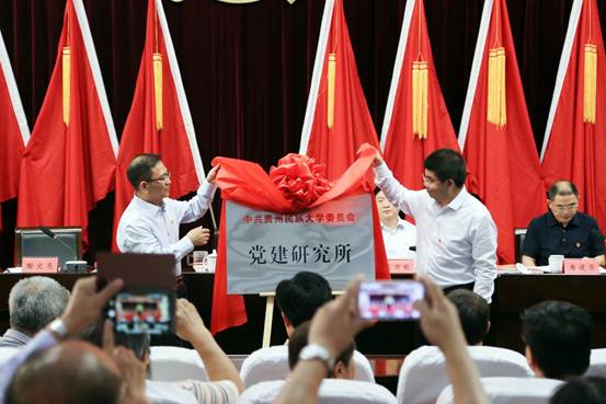 校党委书记张学立、校长陶文亮共同为“中共贵州民族大学委员会党建研究所”揭牌。