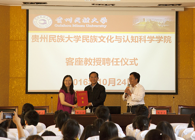 讲座结束后,进行了客座教授聘任仪式,校党委书记张学立教授为傅小兰教授颁发聘书。报告结束后,民族文化与认知科学学院全体师生在校行政楼外与傅小兰教授合影留念。
