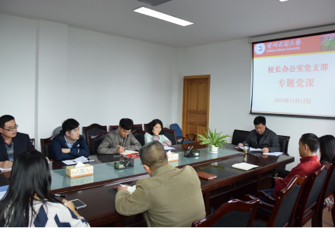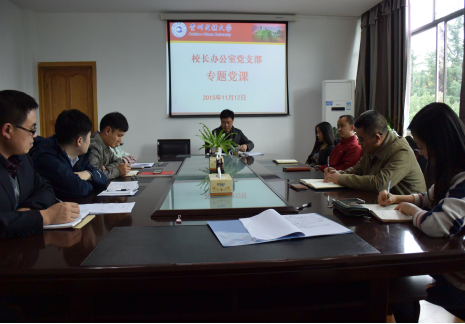 为贯彻中共中央关于全面从严治党要求,校长办公室党支部于11月12日上午在行政楼403会议室组织党员上专题党课。党课主要对《党政领导干部选拔任用工作条例》、《中国共产党纪律处分条例》和《中国共产党廉洁自律准则》等文件进行了学习。